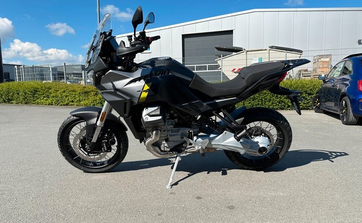 Serienausstattung:FULL-LED-Scheinwerfer mit Tagfahrlicht; Kurvenlichtfunktion; LEDBlinker; Kurven-ABS und Moto Guzzi Traction Control; Tempomat;